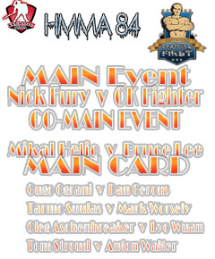 Weston: The main event of HMMA 84 is a middleweight fight between two ranked fighters. Everyone knows by now that Nick Fury is one of my favorite fighters for his fights are never boring and full of action. He comes into this fight finally putting one of the greatest rivalries HMMA has even seen behind him, he came out on top over Gugo Ograni who also fights tonight. It was a great series that helped reintroduced the HMMA fans to Nick after a visit with the monks to train. Since coming back he is 3-0 inside the HMMA cage and building steam as a possible contender down the road, in order to continue his streak he must beat Ok Fighter. Now don’t let the name fool you OK fighter is more then “Average” He is actually very good, its his power that sets him apart from most fighters, and the reason why he is making his HMMA debut against the 4th ranked fighter in the middleweight division.